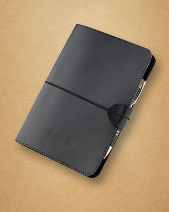 Solidne zabezpieczenie: Naturalna skóra skutecznie chroni zeszyty przed zniszczeniem, wilgocią i zabrudzeniami – niezależnie od tego, czy jesteś w domu, w pracy, w szkole czy w podróży.