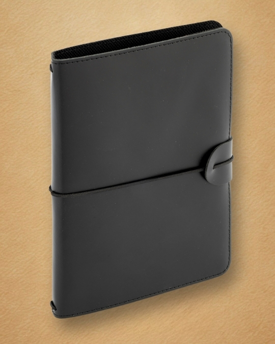 Stylowe zamknięcie: Elastyczna gumka w kolorze dopasowanym do etui nie tylko zabezpiecza zawartość, ale też dodaje całości elegancji.