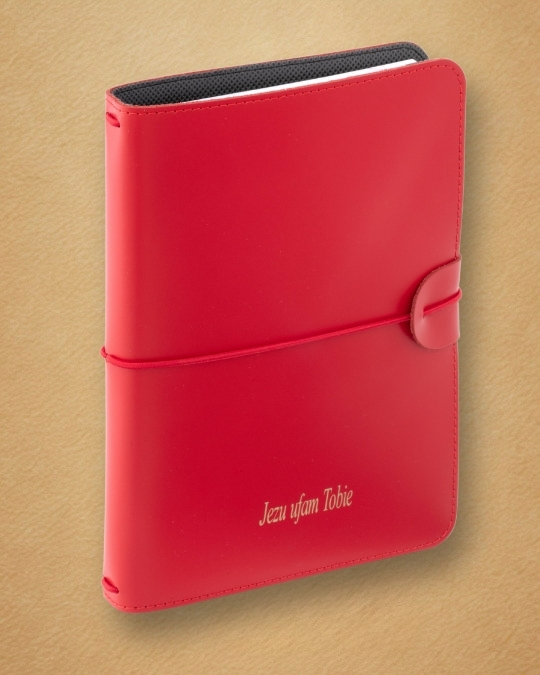 Standardowo oferujemy eleganckie tłoczenie „Jezu Ufam Tobie” w trzech wariantach: