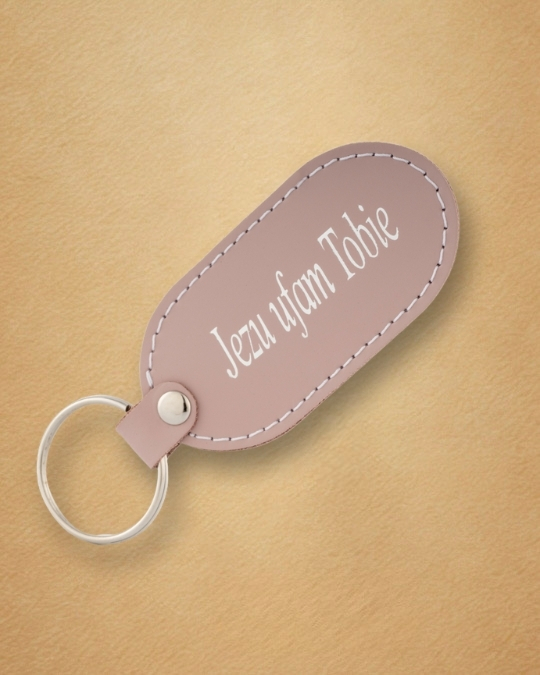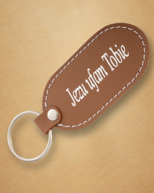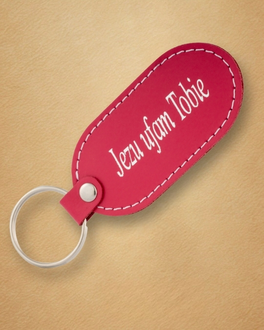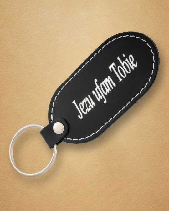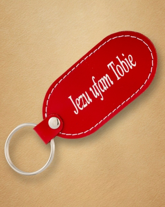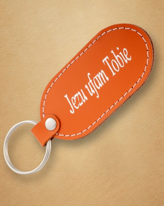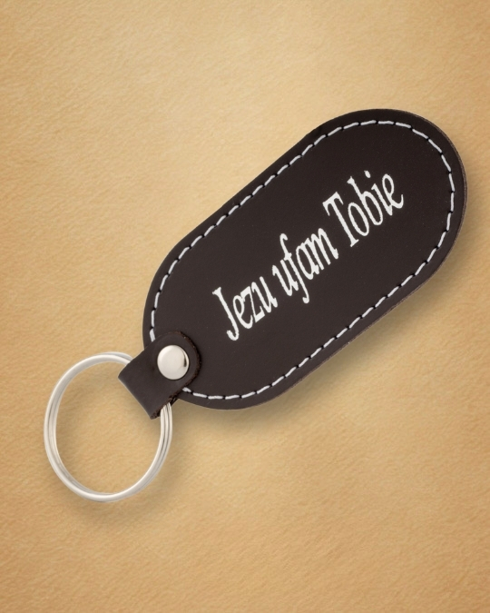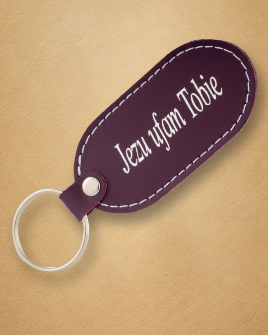 • Skórzany brelok z karabińczykiem – „Jezu Ufam Tobie”Skórzany brelok z karabińczykiem – „Jezu Ufam Tobie”