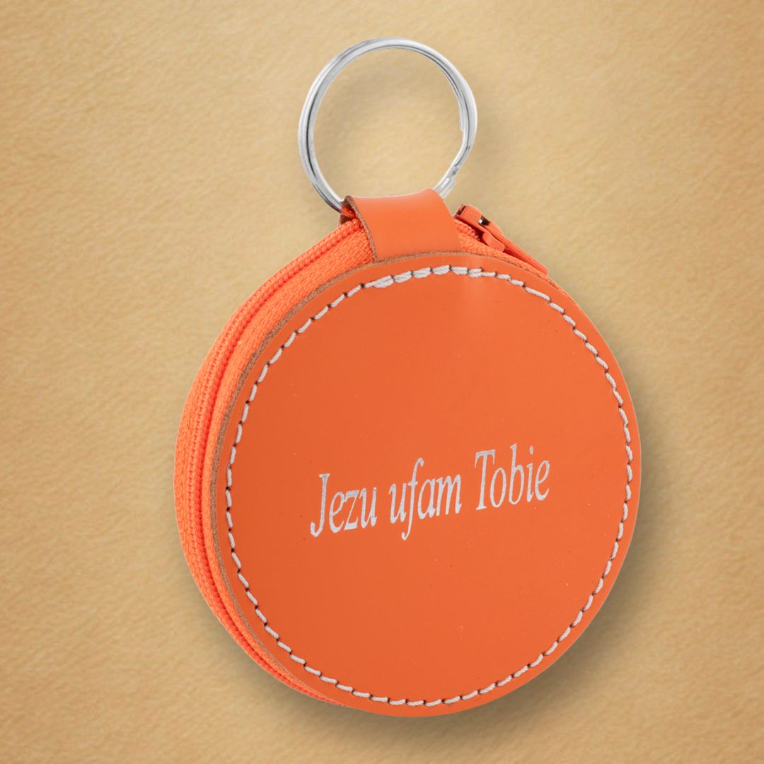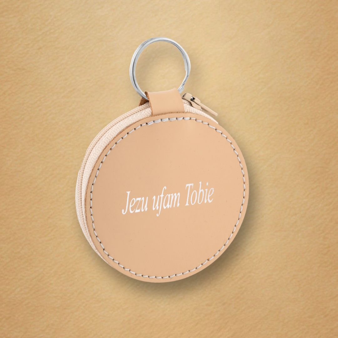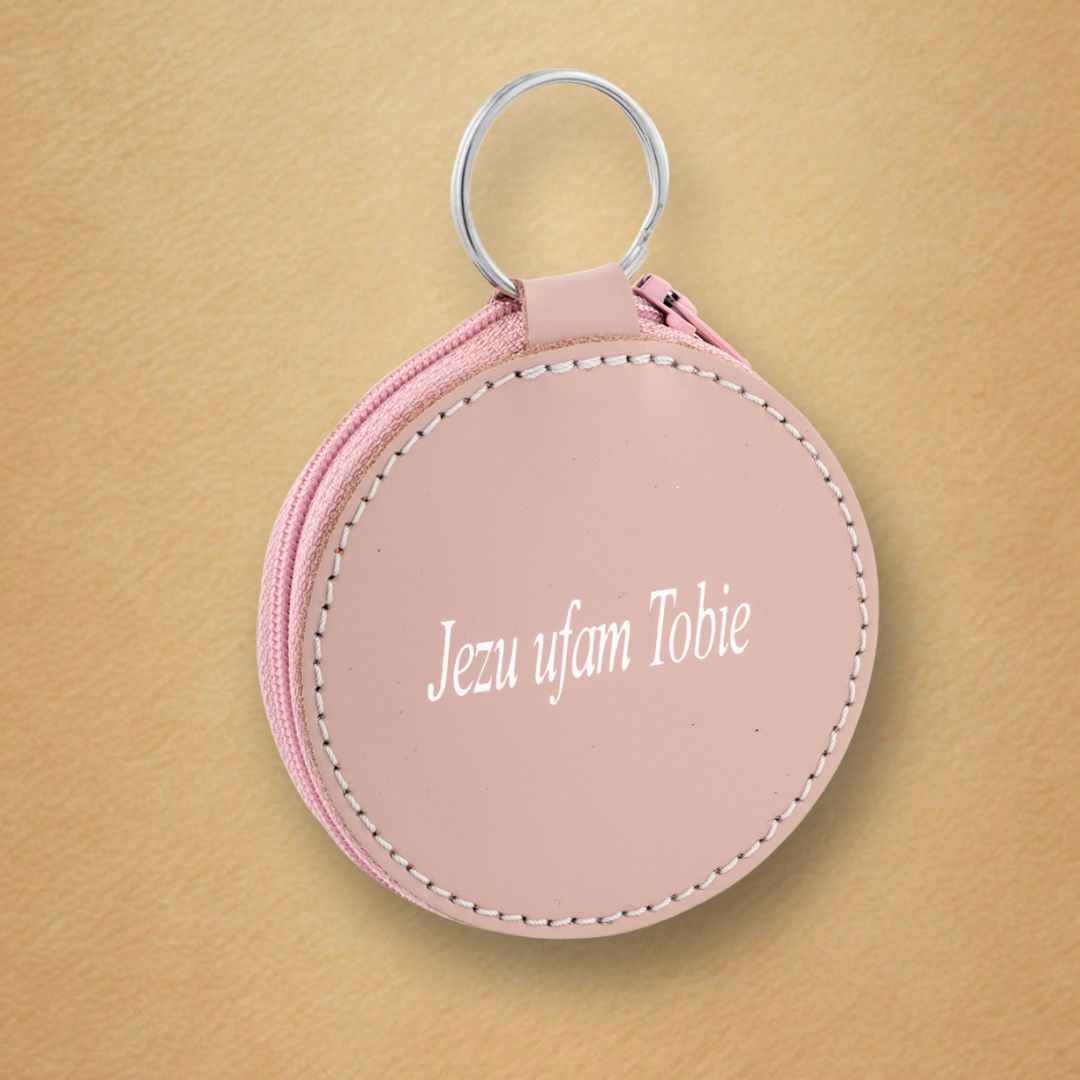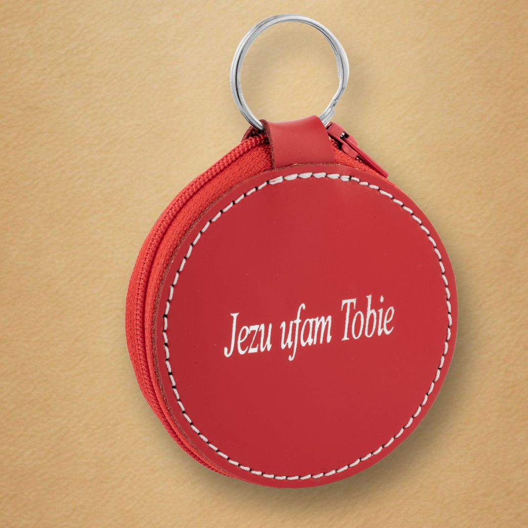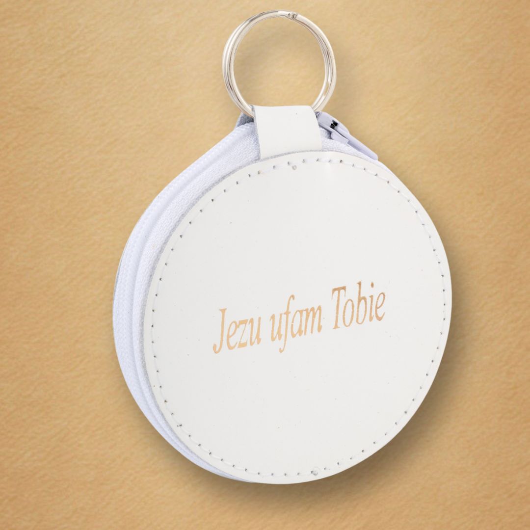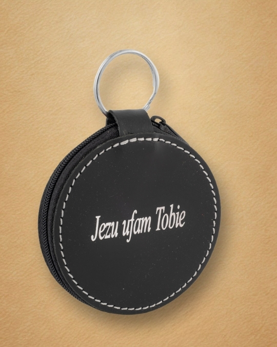 Zamykany na zamek błyskawiczny, ozdobiony tłoczonym napisem „Jezu Ufam Tobie”, idealnie sprawdzi się jako pokrowiec na różaniec, kluczyk do auta, pieniądze czy inne drobne przedmioty, które chcesz mieć zawsze przy sobie – bezpieczne i estetycznie przechowane.