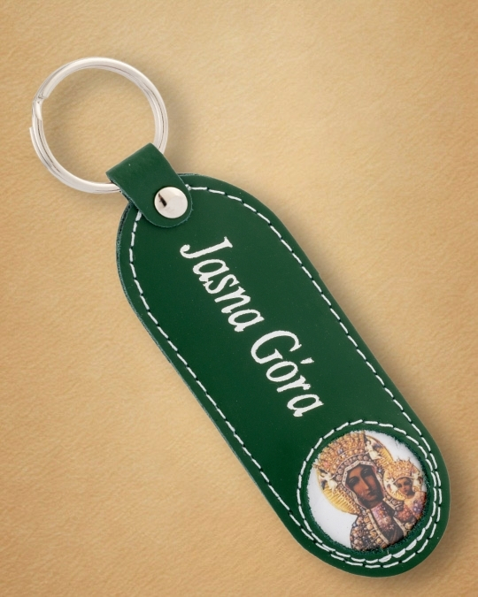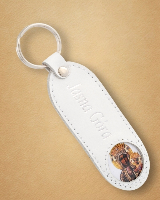 Brelok do kluczy z naturalnej skóry bydlęcej, ozdobiony wytłoczonym wizerunkiem Matki Boskiej Częstochowskiej i napisem „JASNA GÓRA”, to wyjątkowy sposób, by codziennie pamiętać o opiece Maryi – Królowej Polski i naszej duchowej Matce.