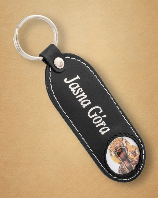 Skórzany brelok z wizerunkiem Matki Boskiej Częstochowskiej
