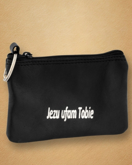 Stylowy pokrowiec na różaniec z brelokiem, wykonany z naturalnej skóry licowej, łączy funkcjonalność i duchowość – idealny jako etui na różaniec, portmonetka lub schowek na drobiazgi. Dostępny z tłoczeniem „Ave Maria”, „Jezu Ufam Tobie” lub „Totus Tuus” i praktycznym kółkiem na klucze.
